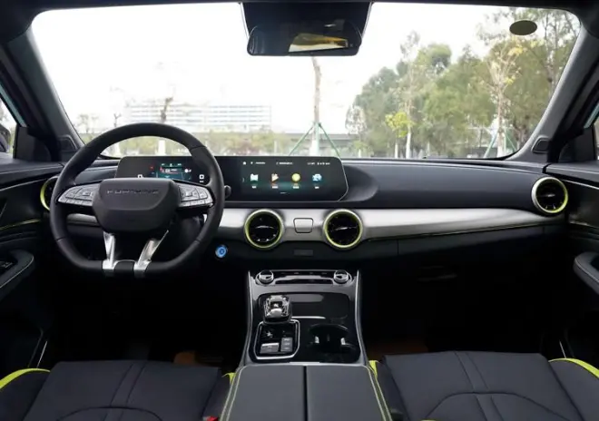然而,东风风行就是不想给你惊喜,或者是干脆也懒得重新设计了。风行雷霆在内饰的设计上完全照搬风行T5 EVO,中控屏、方向盘和空调出风口所有的设计,也都完全一致,全系车型配备由10.25英寸全液晶仪表盘和10.25英寸中控大屏组成的双联屏。