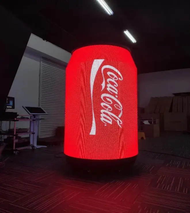 Coca-Cola Company(可口可乐)是全球最大的饮料公司,除全球最有价值品牌可口可乐之外,可口可乐公司还生产全球前5大饮料中的3个,包括健怡可口可乐、雪碧和芬达,以及大量其它种类的饮料,包括无糖饮料、水、果汁和果味饮料、茶、咖啡和运动饮料等。本次展厅通过异形软模组建造了柱形可乐罐形象,为展厅标志性产品做突 出亮点。