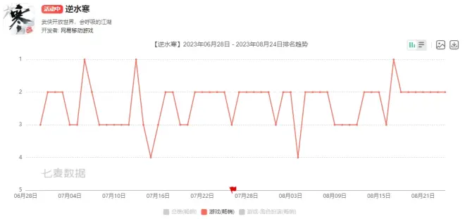 目前网易在国内iOS畅销榜前列的不止有《梦幻西游》这一款长线产品。《蛋仔派对》自从年初火爆以来,目前依然基本维持在畅销榜TOP20;《逆水寒》手游上线至今保持在畅销榜TOP4,并且数次登顶过榜单;《巅峰极速》则基本在畅销榜TOP30,近期榜单排名稍有下滑。