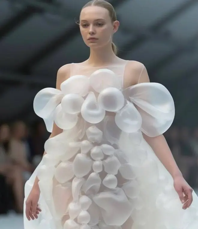 那些让人看不懂的时尚,大多数都出现在时尚秀场当中,这里会出现各种各样令人匪夷所思的艺术品,可以说只有你想不到,没有他们设计不出来的。之前看到过很多奇葩的设计,比如反重力裙子,整个裙子都是倒过来的,还有设计成食物的衣服,以及用塑料袋做成的衣服,而今天要跟大家分享的,就是“充气泡泡裙”,看完真是好想捏爆它!