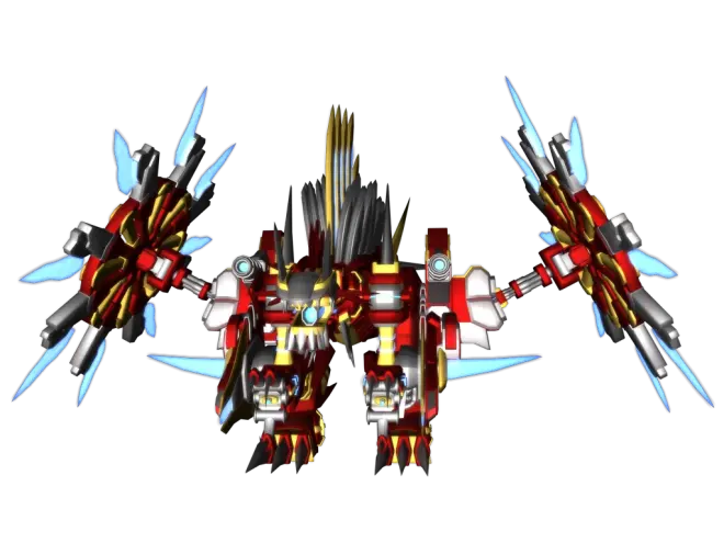 勇猛苍蓝阳焰(Fortis Blue Prominence):从口中以及身体两侧的炮管一齐发射一兆度的高能镭射光束,拥有霰弹连射与蓄力集束远射等多种攻击模式。