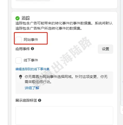20.如需跟踪网站事件,勾选网站事件