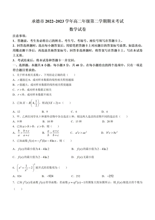 河北省承德市2022-2023学年高二下学期期末考试