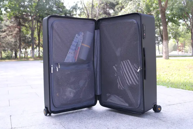 地平线8号经典款26寸行李箱是采用3:7的黄金比例,对于大件物体也能够轻松放下,适合鞋子、大衣这种单独放置的物件,为了更好的分区,都采用了网布隔层,让每个区域都能够独立使用。