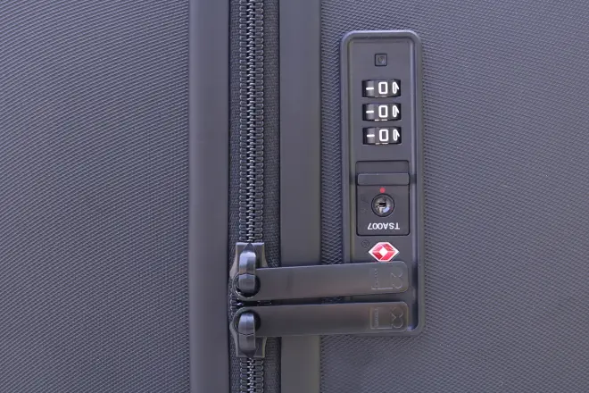 打开行李箱前就能看到全球通用的TSA海关锁,去到国外也不必担心行李被撬开了。