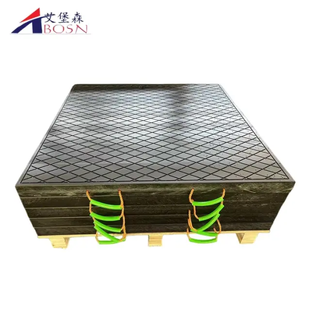 高分子塑料支腿垫板、悬臂梁垫块主要应用于混凝土泵车、起重机等大型机械,扩大承压面积或阻止轮胎滑动的作用。是垫在工程机械支腿下面的垫板,起支撑作用。支腿垫板具有不吸水性,长期在太阳光下暴晒不会膨胀变形;有较强冲击强度;在超负荷的情况下,宁弯而不断;不粘附,容易清洗;耐化学和腐蚀;极其恶劣的环境下正常使用,耐温零上80度零下169度;比钢板比重小重量轻,一个人很容易操作;不会因腐蚀而断裂,比木质垫板安全性提高很多;环保对环境无污染