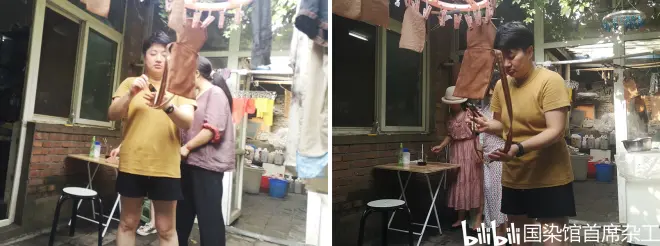 植物染色成品的日晒牢度一直是个大问题。为解决这个技术难题,学员们在非遗传承人老师的指导下,进行拼色实验。