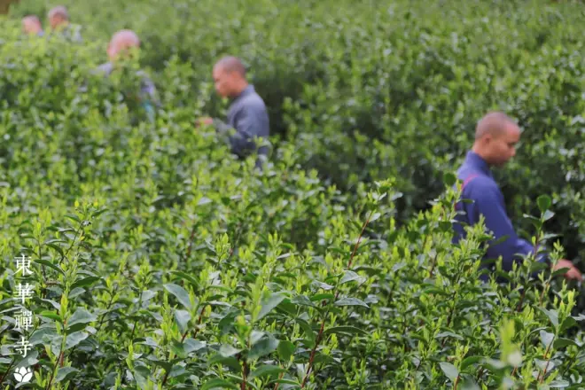 “农禅并重,自给自足”的禅门宗风已持续千年,东华禅寺僧众通过“以农入禅、以禅耕农”的修行法门,实现了茶、禅、人与大自然的合一,并制作出了地道的有机禅茶——东华禅茶!