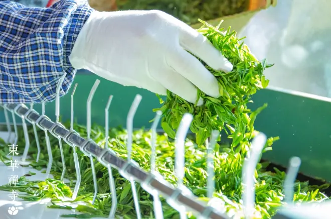 我们用接近自然的手法最大程度的保留茶中的营养价值和最本真的口感,用虔诚心来供佛、供法、供僧、结缘。”——东华禅寺的制茶禅师如是说。