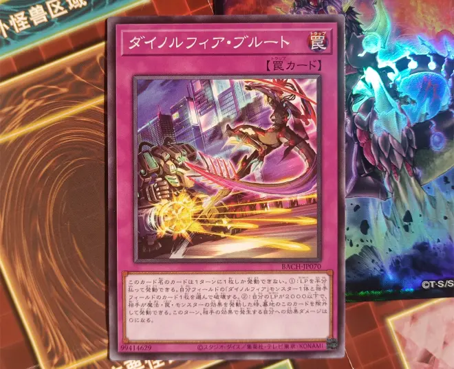 ①:自己场上有「 恐啡肽狂龙 」融合怪兽存在的场合,把基本分支付一半,从自己墓地把1张反击陷阱卡除外才能发动。这个效果变成和那张反击陷阱卡发动时的效果相同。
