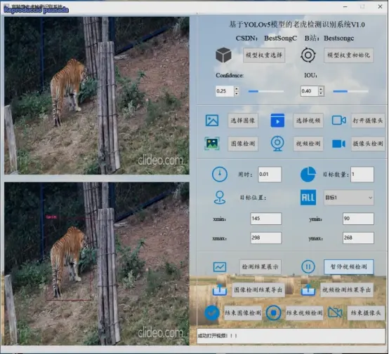 摘要:基于深度学习的高精度老虎检测识别系统可用于日常生活中或野外来检测与定位老虎目标,利用深度学习算法可实现图片、视频、摄像头等方式的老虎目标检测识别,另外支持结果可视化与图片或视频检测结果的导出。本系统采用YOLOv5目标检测模型训练数据集,使用Pysdie6库来搭建页面展示系统,同时支持ONNX、PT等模型作为权重模型的输出。本系统支持的功能包括老虎训练模型的导入、初始化;置信分与IOU阈值的调节、图像上传、检测、可视化结果展示、结果导出与结束检测;视频的上传、检测、可视化结果展示、结果导出与结束检测;摄像头的上传、检测、可视化结果展示与结束检测;已检测目标列表、位置信息;前向推理用时。另外本老虎检测识别系统同时支持原始图像与检测结果图像的同时展示,原始视频与检测结果视频的同时展示。本博文提供了完整的Python代码和使用教程,适合新入门的朋友参考,完整代码资源文件请转至文末的下载链接。