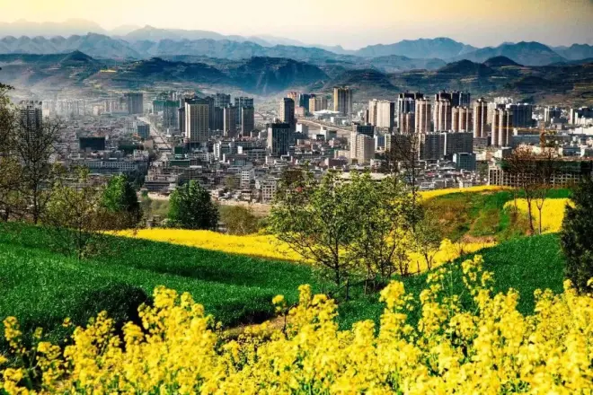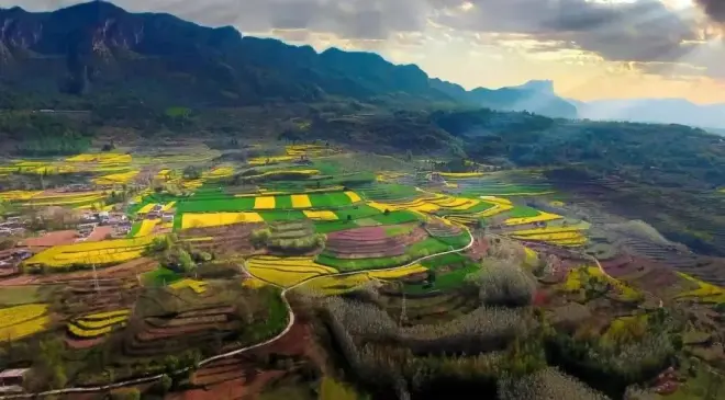 整个徽县便上演巨型的金黄色油菜花团体操...