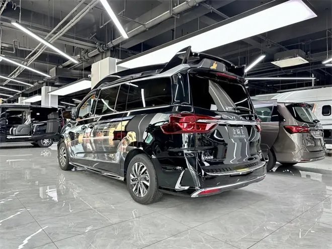 本款上汽大通G20高顶金骑士中排采用的是埃尔法同款座椅,多项电动调节与通风加热功能,乘坐舒适感也是和埃尔法一模一样地吸顶电视满足行车娱乐,旋转的中排座椅可实现面对面交流,在行车过程中也可以进来一个小型的商务会议。c