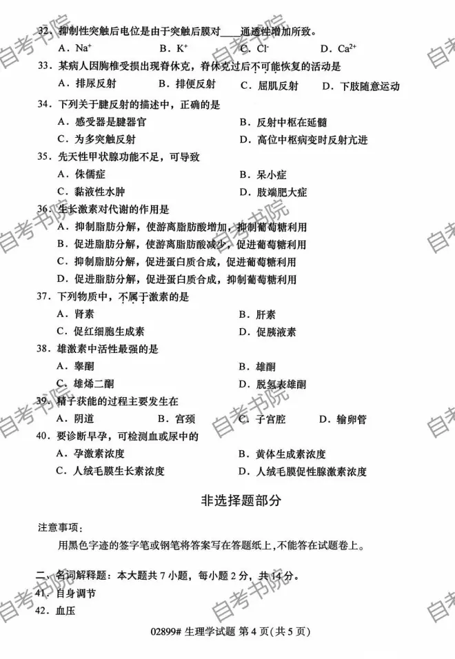 2023年4月自考《02899生理学》真题和评分参考的评论 (共