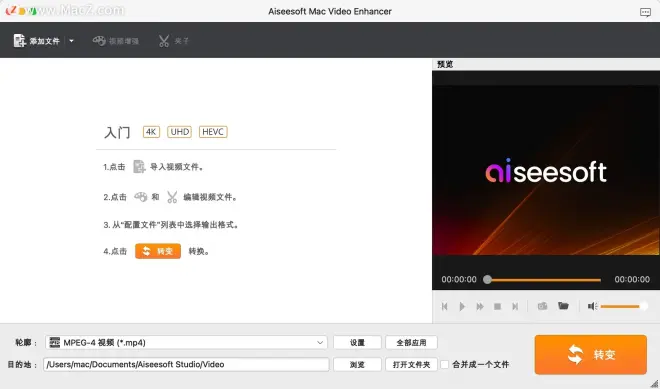 视频高效处理,Aiseesoft Mac Video Enhancer 激活版非常符合您的需求,它可以帮助用户改善视频质量,提高视频观看体验。它支持多种视频格式,包括MP4、MOV、AVI、MKV等,并提供了多种视频处理功能。AIseesoft Mac Video Enhancer的用户界面简单直观,可以方便地载入和处理视频。