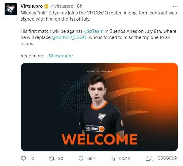 VP俱乐部火速招入mir,并与这名27岁的老将签订了一份长期合约。目前VP战队变成了6人阵容,而且mir将顶替n0rb4r7参加比赛,因为后者近期右手桡骨和左手一根手指骨折需要修养。但伤愈后6人阵容谁上谁下,这可能又是一出好戏。