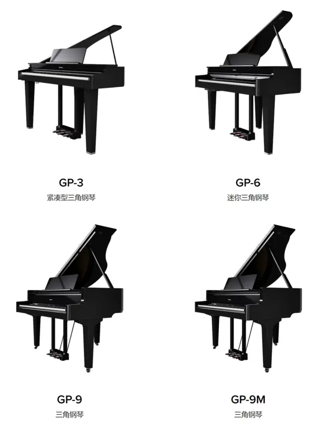 从旗舰级的GP-9和GP-9M到中型尺寸的GP-6,再到独特的紧凑型GP-3,总有一种型号可以为每个环境带来钢琴的奢华体验。Roland 罗兰的数字优势贯穿始终,包括蓝牙®音频/MIDI连接等丰富功能。