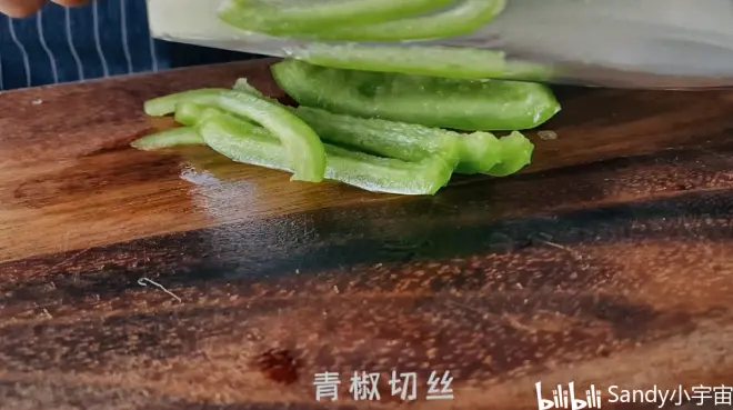 众所周知鸡胸肉是减脂期很多人的选择,可想而知鸡胸肉是比较健康的,今天我们来看看如何让鸡胸肉变得下饭要怎么做。 需要准备的材料:鸡胸肉、青椒、生抽、老抽、生粉、小米辣、大葱、大蒜。 首先将鸡胸肉和青椒都切丝,如图示。