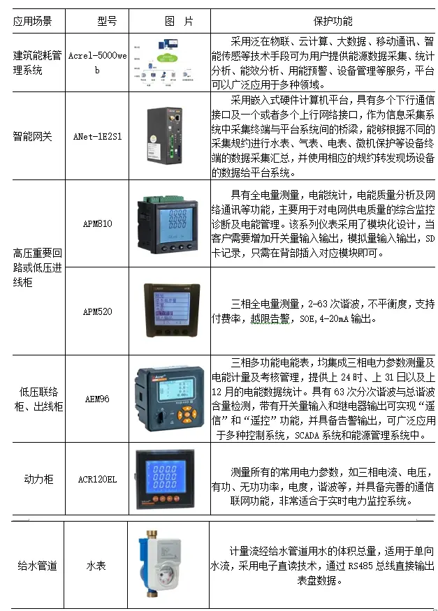 商业综合体的现场仪表层设备包括电能数据的计量仪表,建筑内分项电能的计量仪表,各级水表等能耗计量设备。