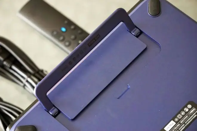 支架拉出后可以垫高投影仪前部形成夹角,避免前端被桌面等遮挡,投影角度更好。