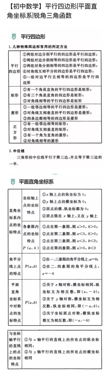【初中数学】平行四边形|平面直角坐标系|锐角三角函数