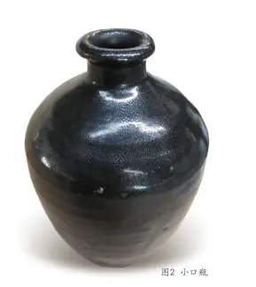 图2为小口瓶,高21厘米,折肩平缓,微鼓,口沿、颈部、肩上布满了斑点中等的油滴,属清晰光亮的一类。