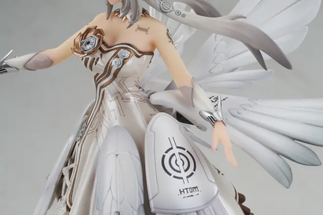 刻线纹理搭配珠光渐变,细致呈现出「丽芙·极昼」的圣洁姿态。裙摆层叠,纤薄衬裙部分更采用透明材质,两侧裙翼还加入可动结构以展现多种动态。