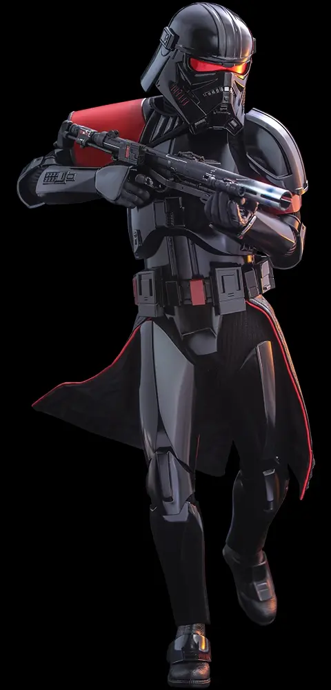 Purge Troopers,也被称为Purge Stormtroopers ,是冲锋队的一种特殊变体,被银河帝国的审判官用作可消耗的敢死队。这些士兵被指派去追捕任何幸存的绝地,在克隆人战争和随后对卡米诺的克隆行动终止后被激活。最早的Purge Troopers实际上是赏金猎人产生的最后一代克隆人士兵 Jango Fett的模板。与他们在银河共和国大军中的前身一样,那些早期的清洗部队被编程为服从66 号命令,这使他们对所有绝地都怀有敌意。他们最终被从冲锋队中抽调的非克隆人新兵补充和取代。