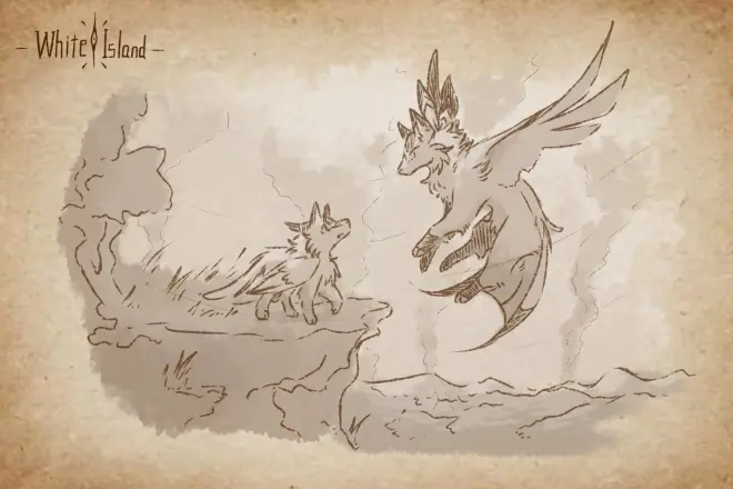 真真切切,他现在飞起来了。恐惧很快就转变为了惊喜,就像记忆里的那些大人那样能够自由地在天空驰骋。缄生仿着溯光的样子奋力拍打着还没完全丰满的羽翼,还是小心翼翼地紧跟在大人的身后,向断崖下的丛林飞去。