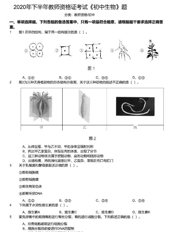 23上教资笔试科目三初中生物往年真题含完整答案解析2023年教师资格证笔试科三初中生物