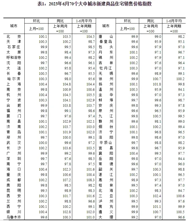 7月15日,统计局公布了《2023年6月份70个大中城市商品住宅销售价格变动情况》,商品住宅销售价格环比上涨城市个数减少,各线城市新建商品住宅销售价格环比持平或略降、二手住宅环比下降;各线城市新建商品住宅销售价格同比有涨有降、二手住宅同比下降。