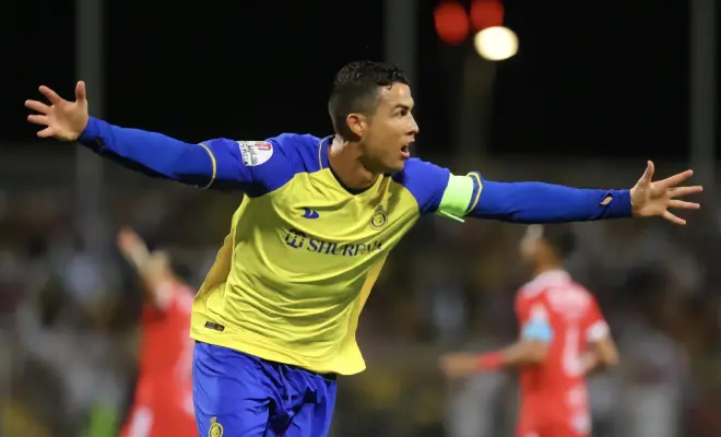 在利雅得胜利,C罗终于重新享受到了作为世界最伟大球星应有的待遇,球场外俱乐部为C罗提供天价年薪、宫殿住宅、私人飞机和豪车、享受王室待遇,球场上C罗穿上7号球星,成为球队队长和第一点球手以及临门最后一脚。在沙特联赛如鱼得水的C罗在球场上也宛若天神下凡,降维打击,6场比赛就为球队打入8个进球,贡献两个助攻,两次上演帽子戏法(其中一次大四喜),强势杀进联赛射手榜前四,甚至有望成为联赛金靴,职业生涯再次走出低谷,再登高峰。