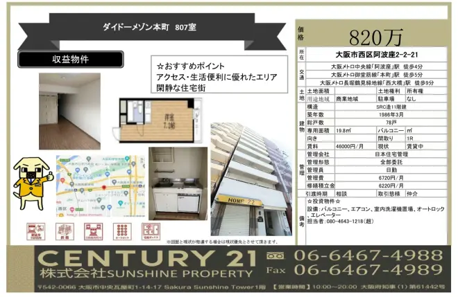 » 【日本.大阪】《大阪睇屋》2023年07月02日(西区单身公寓)