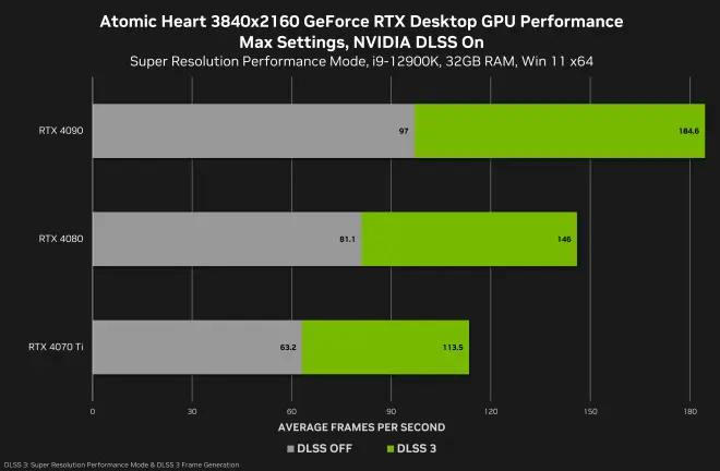 当“原子之心”于 2 月 21 日推出后,GeForce RTX 游戏玩家已拥有业界领先的性能,并可以在游戏中体验 NVIDIA DLSS 3、NVIDIA DLSS 2 和 NVIDIA Reflex。