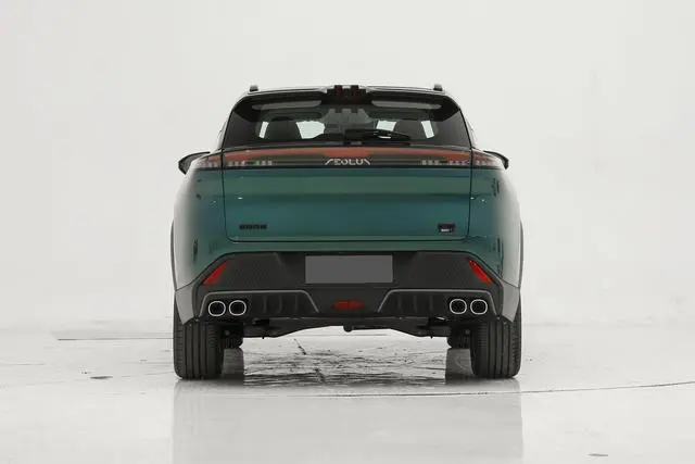 车尾方面,车顶设计了大尺寸的扰流板,搭配高位刹车灯,增强层次感。尾灯为贯穿式设计,并进行了熏黑处理,点亮后很有辨识度。后包围造型简约,采用了黑色的饰板与扩散器搭配。排气布局方面,采用了双边共四出的设计。