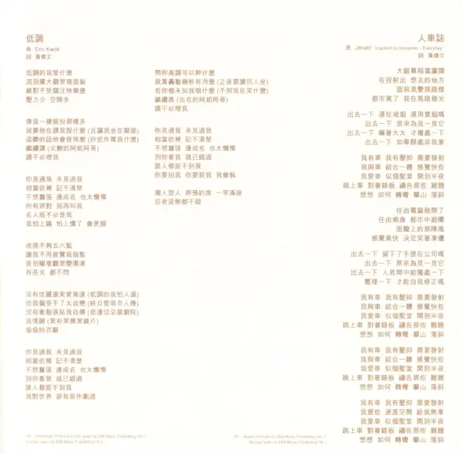 现有由自己扫描并购买的06环球港预购版CD的TIF(600dpi)和15环球简约再生版CD的TIF(600dpi)以及网络搜集的港二版的PNG(600dpi),欢迎有实体碟和扫描条件的臣饭提供更清晰的封面和歌词本扫描件
