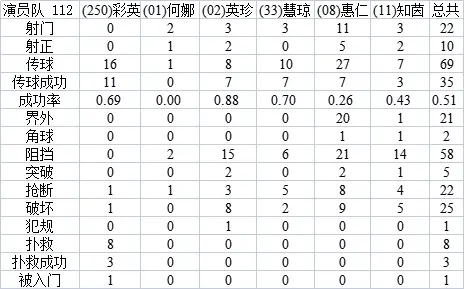 射门的她们S4 《第三届 超级联赛》模特队 VS 演员队 比赛数据