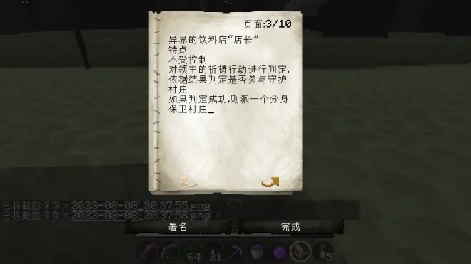 有时候觉得一个人玩minecraft太无聊了,没有剧情,没有目的,想着要是有其他人参与进来就好了。于是参考了一下跑团的玩法,就想了个网友参与的游戏玩法,目前还处于测试阶段,所以角色强度等等都不是很平衡,之后会慢慢增加或者修改设定。