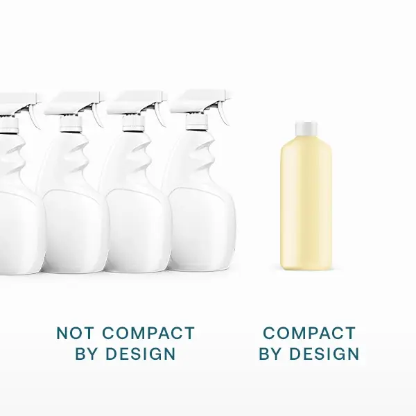 Compact by Design 产品比同类产品更集中。浓缩清洁剂在家中稀释后可以制成许多加仑的清洁液。