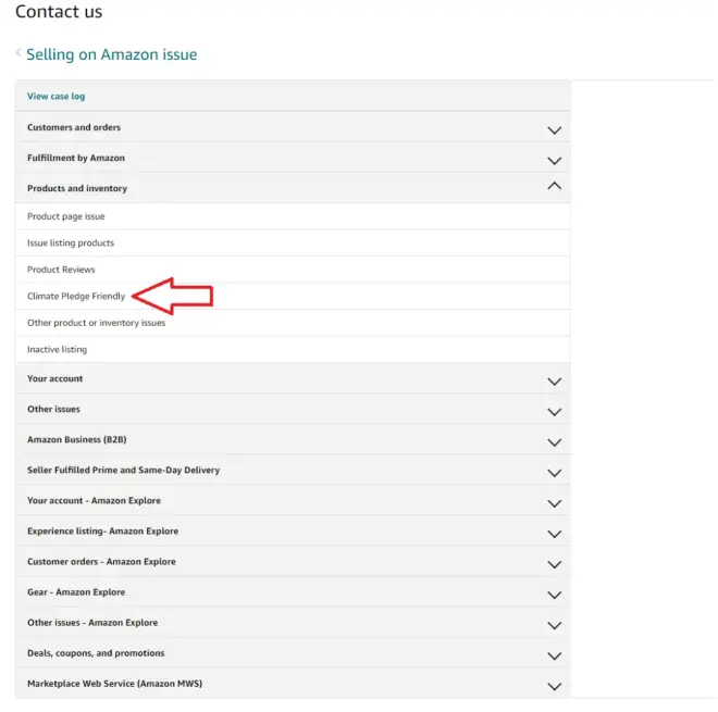 3、选择“Products and Inventory”主题下方的“Climate Pledge Friendly”;