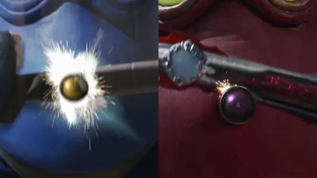武器的特写,特利迦也致敬的泰迦,此前其实也用过相似的镜头了。泰迦中是泰迦三重剑的特写,随后释放攻击打败了暴雷闪电。特利迦中是闪耀之刃特写,随后打跑了希特拉姆。
