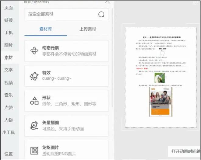 ③丰富有趣多彩的软件素材,有动态元素、矢量图片、特效、形状、免抠图、手机、链接、小工具等,简直挑花了眼!
