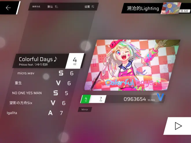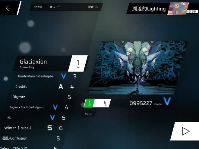 OK,到这里Phigros主线就结束了,你可以继续练其他的曲目挑战自己啦
