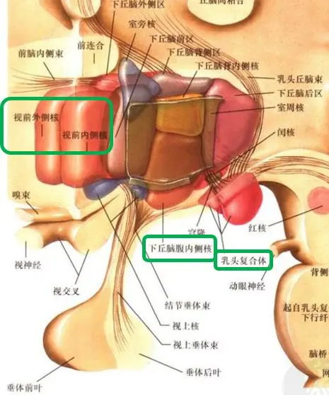 瘦素的神经受体位于下丘脑中。下丘脑主要参与人体能量平衡的调节,由不同的神经元群体组成,包括弓形(ARC)、腹膜(VMH)、室旁(PVH)、背内侧(DMH)、下丘脑和下丘脑外侧区(LHA)核。其中ARC在调控瘦素中发挥着重要作用。