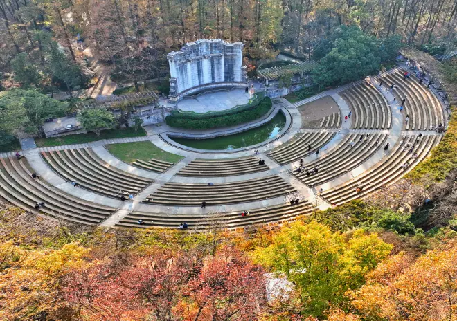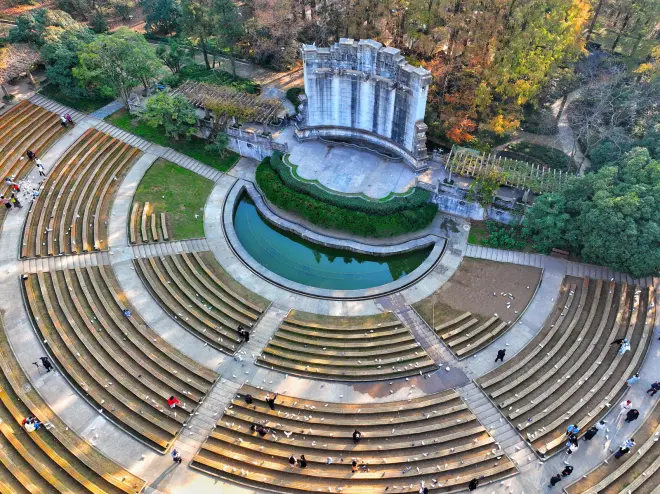 #中山陵 南京中山陵音乐台被列为中国20世纪建筑遗产,音乐台糅合中西建筑和江南古典园林特点,利用自然起伏地形,结合山势呈半圆形辐射布局,超大的环弧形座位广场,创造出开阔宏大乐坛空间。舞台照壁宫殿式石构须弥座,雕饰艺术精湛,配以云纹、龙头、曲池、莲荷、青藤花架设计精巧,广场满天白鸽飞舞,漫步着,叽叽咕咕,与游人和谐相处,互动合影,享受着游人的喂食和拍照,展现出一幅大自然和动物的和谐景观,达到了自然与建筑的和谐统一。音乐台宏伟壮观,照璧、舞台、长廊被茂密的森林包围着,苍翠挺拔,自然环境优雅,欢快祥和,浪漫而独特,我在这里听着音乐,赏着美景,度过难忘的美好时光,游人们观赏着鸽子飞舞能治愈一切,独特的风景是市民游客的休闲娱乐绝佳圣地。