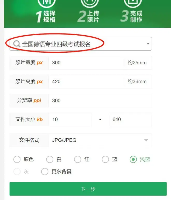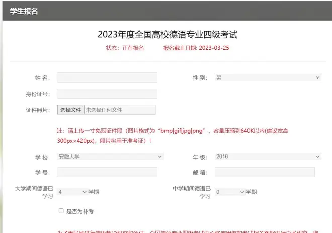德语专业四级考试网上报名流程及免冠证件照片制作方法