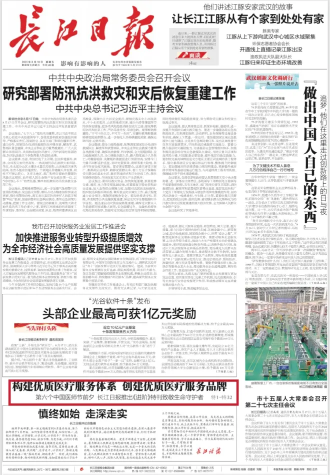 在第六个中国医师节来临之际,长江日报推出特刊《进阶——武汉医疗服务品牌创新实践》。
