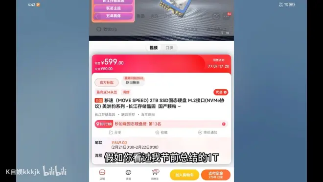 节后速崩2T 599自营纯国产长江颗粒 移速美洲豹国产系列 京东自营 还敢更低吗