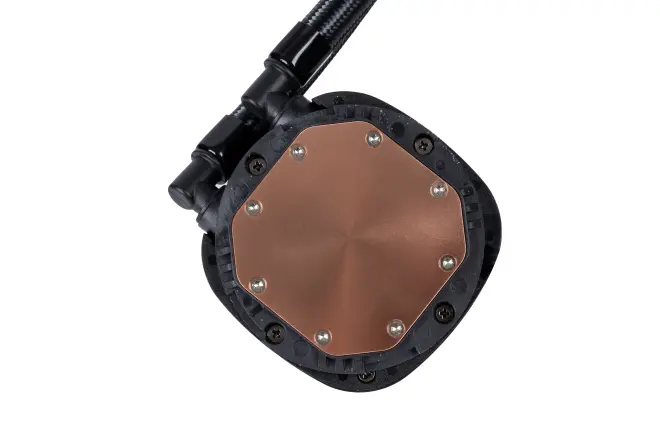 冷油内部为第三代水泵架构HORIZON 1.0,搭配转速为2800RPM(±10%)的陶瓷轴心,运行噪音仅为27dBA,底部为大面积低阻铜底,航天级精度更好贴合CPU表面。