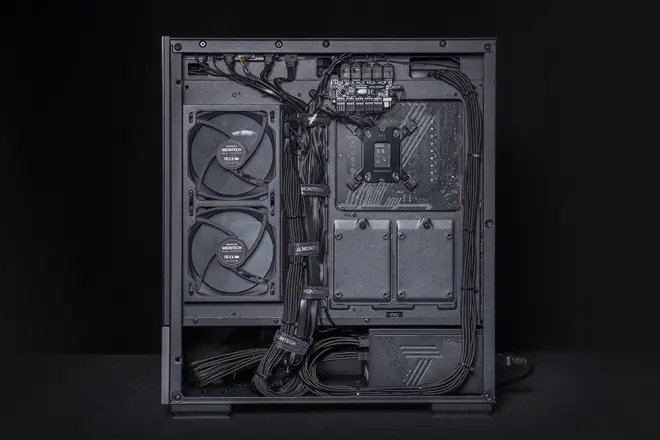 内部的空间布局对于目前的主流硬件都能做到兼容,侧面和地面的反向风扇不仅进一步提升了散热效能,同时也使整个舱内布局饱满,视觉感受更为协调。